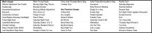 San Francisco and Marin Intergroup serves more than 900 A.A. groups in our common purpose of carrying the A.A. message of recovery to alcoholics. We provide important services for local 12th Step work, such as running Central Office, selling A.A. literature, publishing a local meeting directory and website and operating a 24-hour telephone hotline. In addition, Intergroup connects the local Fellowship to service opportunities, informs the public and professional community about A.A. and acts as an information exchange for announcements and events.