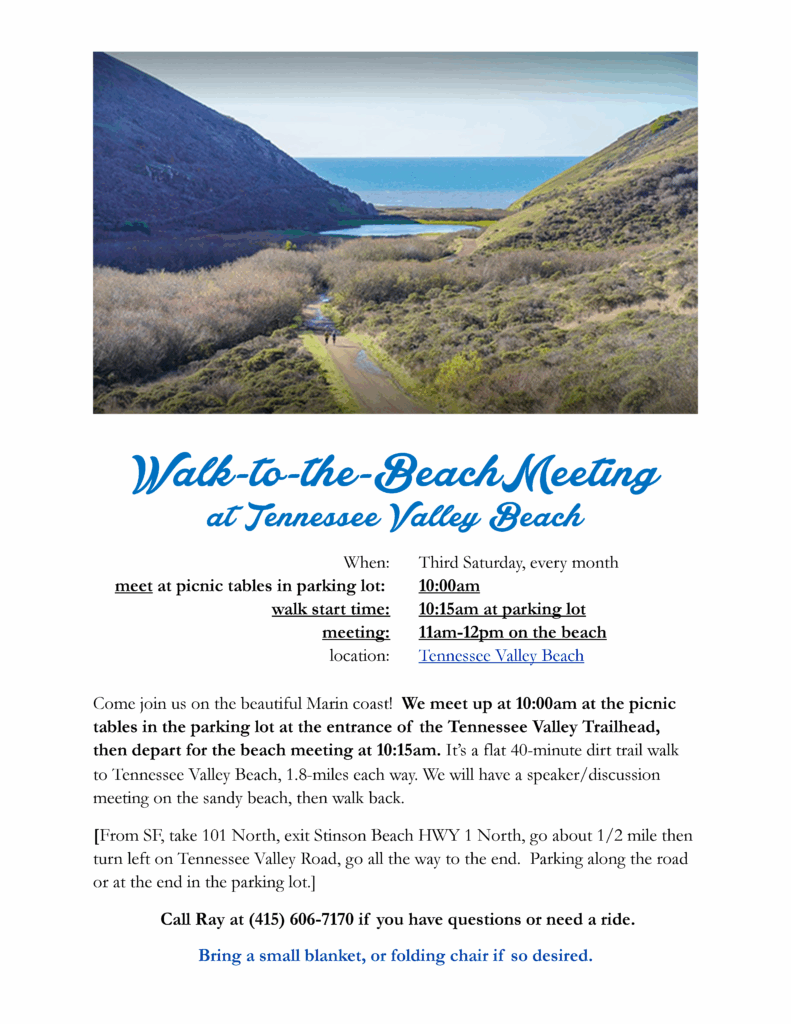 “Walk to the Beach” Monthly Hike and A.A. Meeting